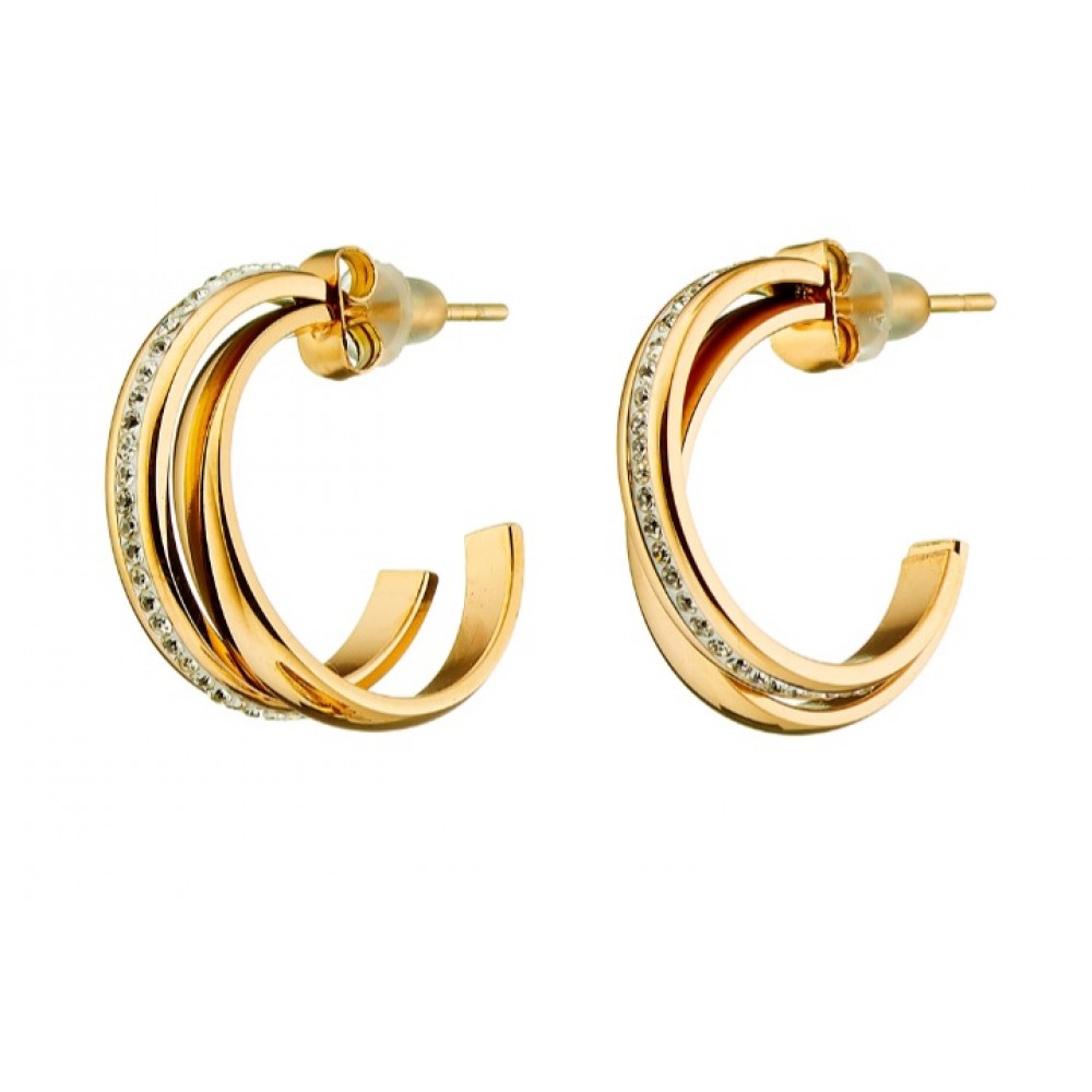 Σκουλαρίκια κρίκοι ατσάλινοι 316L σε χρυσό διπλοί με πέτρες Swarovski