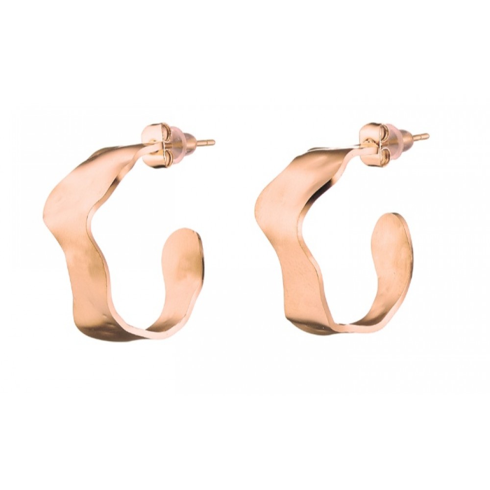 Σκουλαρίκι κρίκοι ατσάλινοι 316L σε ρόζ χρυσό κυματοειδείς ματ